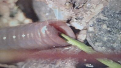 · A worm tearing off live green plant materials and moving stones with its mouth. Brad’s macro video photography takes you down inside a worm midden mound where this crossroads of the ecosystem begins to convert natural materials to nutrient rich soil.
