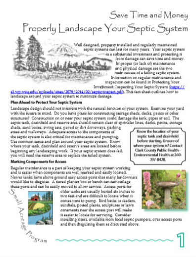 - Landscaping tips with a septic system. Seattle & King County Public Health Wastewater Program. 2005.