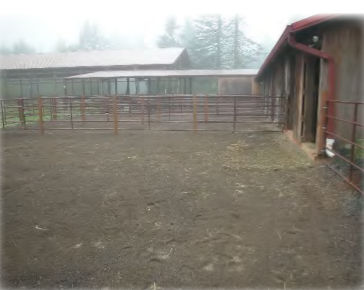 Economical: Hogfuel – Typically comprised of bark pieces from evergreen tress such as Douglas fir, pine or cedar, hogfuel packs down and decomposes over time. This requires periodic replacement. Hogfuel locks up some of the nitrogen and urea in manure. As it decomposes, microorganisms breakdown the hogfuel and in the process, convert the nitrogen and other nutrients into a more stable form that releases over a longer period of time than straight manure. Inspect hogfuel before you purchase since there can be a lot of variation in what constitutes hogfuel. Material with mostly small pieces will break down quickly, while larger pieces will make it difficult to remove manure. Installing 12 – 24” of hogfuel with flakes of straw or hay underneath and regularly removing manure will extend the life of the material. Any incidental pieces of wood that are removed with manure can be composted. Hogfuel can be a relatively inexpensive footing for sacrifice areas and other heavy use areas such as feeding and watering areas, gates, and paths.