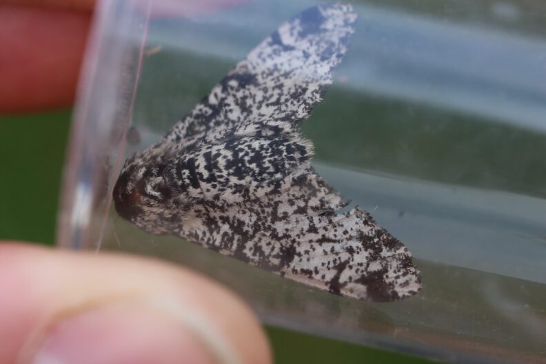 One activity was moth trapping. Low Way Farm is managed for “High Nature Value” grasslands, meaning they do without fertilizer, use minimal to no spot-spray herbicides, delay hay cutting until mid July when many wildflowers have set seed and birds have nested and fledged, and encourage increased species diversity through species-rich hay transfers and plug planting. The farm is bursting with wildlife as a result, and we saw this through the great diversity of moths trapped overnight. With lots of “oo’s and ah’s” from kids, we sorted and identified 16 moth species that were casually collected overnight. We had the help of bird conservation expert (and author) and adept moth enthusiast Carol Inskipp to help us.