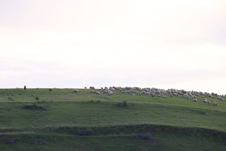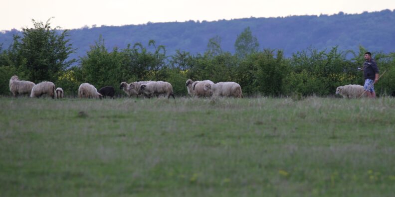 This flock we learned is likely managed by an employee of a business that runs several flocks in the area. This is outside of Jebecu, Romania. The business owner overseas approximately 4-5 shepherds, but we don’t know how many sheep. By the looks about 200+ per flock. This business takes advantage of the fact that there are fewer and fewer livestock producers in the area, and an excess of grazing lands. In Romania this is common as young people move to cities and fewer people farm. An opportunity arises for larger-scale operators to aggregate grazing lands formerly managed by many smaller operations, consolidating land and management. The implications can be overgrazing, and this was widely evident, as there are fewer people making decisions. Single large operators graze lands closer to villages more heavily, and communal lands receive less care. Even so, these consolidated businesses are what is left, and provide valuable grazing in the area that prevents afforestation and loss of the grassland habitat.