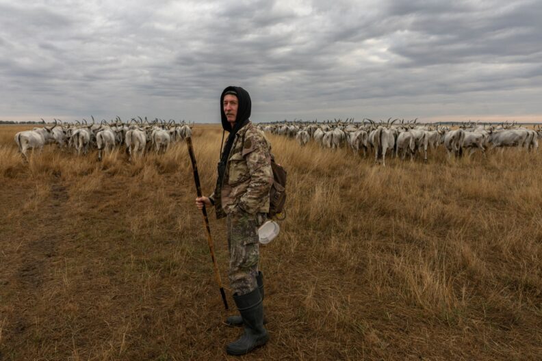 This is Tibor who manages livestock for the Koros Maros National Park in eastern Hungary. I interviewed him in early April, 2025. Tibor says the relationship with the national park is okay and challenging. As a herder raised in the trade, he is very familiar with the Hungarian grasslands, animal health, and forage ecology. Yet in many cases he feels his knowledge is not considered in decision-making. I found that National Park personnel seemed more likely to communicate well and develop collaborate management plans when they worked with herders or shepherds with their own flocks. In a sense the relationship was strong by necessity, and the outcome in terms of good communication and transparency was positive. When the park owned its own herds and hired herders, they seemed less likely to manage collaboratively; the relationship received less attention and the co-generation of knowledge and collaborative management was not as good. Tibor was distressed at how few herders there are less, and was not optimistic. He referred to it as a dying trade, and the grasslands themselves in a state of death due to climate change, declining water, and poor management. He would most like to have a young herder to train and work with in the field. He trains dogs for herding, is highly skilled at using the slingshot (can take a pheasant if he needs a meal), and carves grey cattle horns decoratively. If anyone wants to study with Tibor, we can put you in touch!