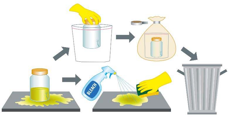 Botulism toxin is produced by bacteria called Clostridium botulinum. The bacteria and toxin can be found in home canned foods that have not been properly prepared, unrefrigerated home foods, and traditionally prepared salted or fermented seafood. Very small amounts can cause severe illness and death.To protect yourself from botulism, never hot pour your food into a jar and seal it for storage. Foods must be prepared using recipes that have been tested for safety. Many foods require the use of a pressure cooker to heat food to high enough temperatures to kill the bacteria and toxin.Always immediately dispose of any cracked jars or potentially contaminated food. Put on gloves before handling the containers, and put the food or container into a sealable bag. Wrap another plastic bag around the sealable bag, and tape it shut. Place the bags in a trash receptacle. Do not discard in the sink, garbage disposal, toilet, compost pile, or recycling container. Always wipe up spills of potentially contaminated food with bleach.