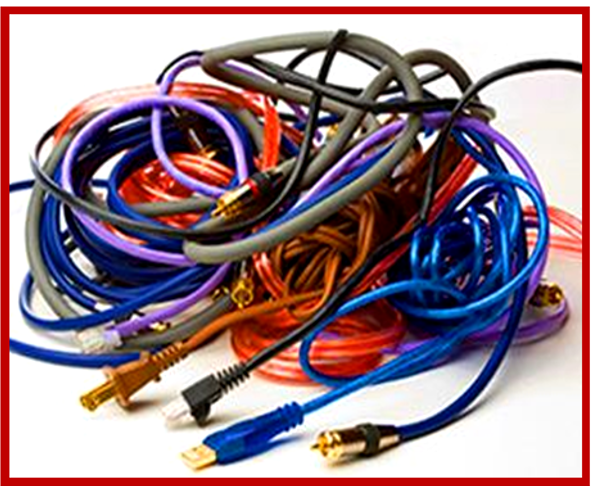 Reuse resources by recycling your old or damaged holiday lights, electrical cords, computer cords, and phone cords.