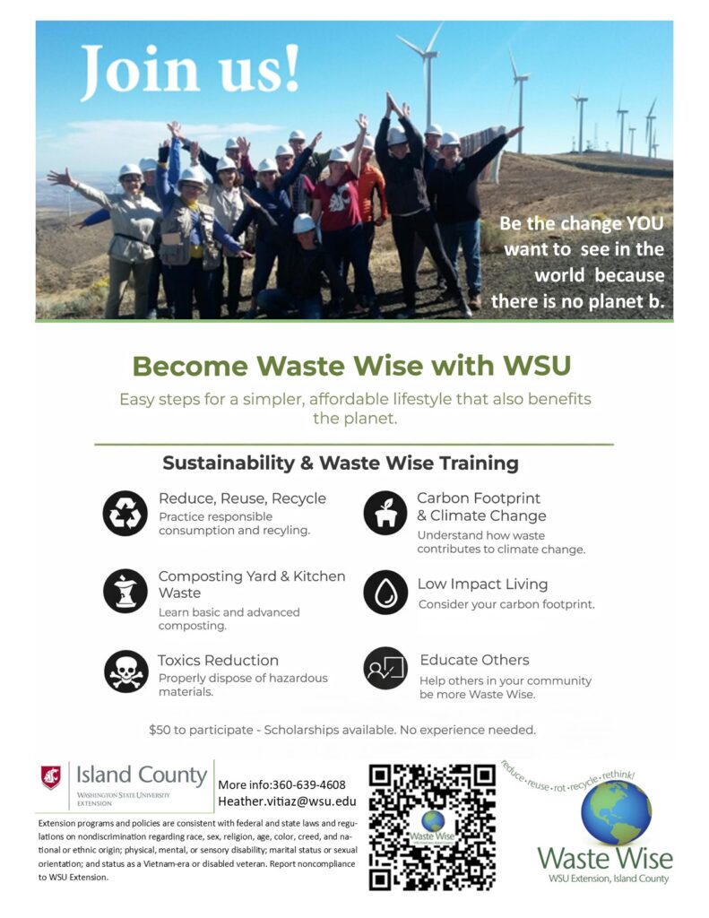WSU Waste Wise of Camano and Whidbey Islands is an education outreach program supported by staff and volunteers who share with others throughout the greater community what they learn in training.