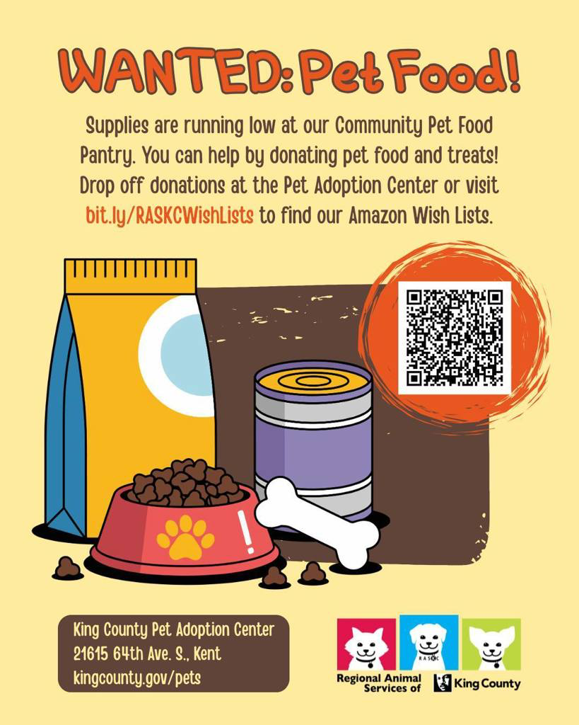 - Club community service opportunity: The King County Animal Shelter is looking for donations. More information below: