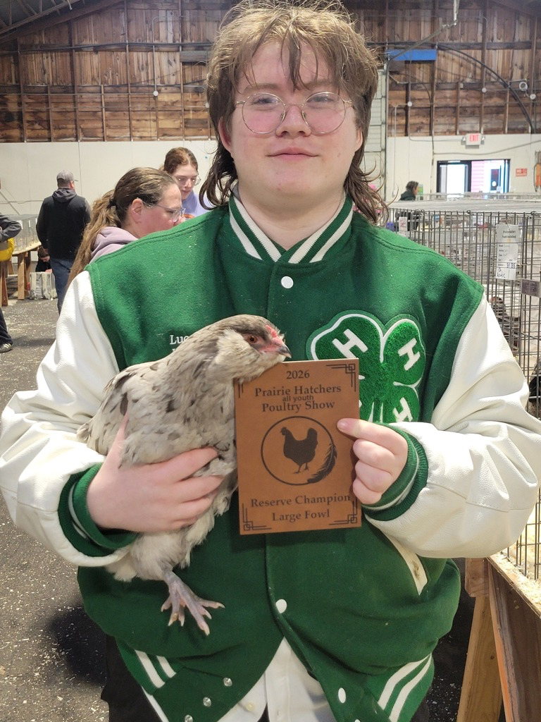 Lucas’s sweet Ameracauna, Clarabelle made it to Champion’s Row, and took home Reserve Large Fowl at the Prairie Hatchers poultry show in Vancouver, WA! That basically means second place out of all the large fowl chickens!