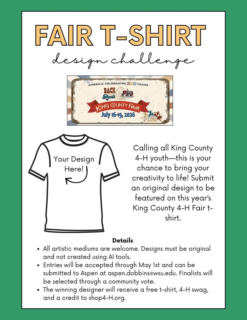 Happy April! No fools here, only important announcements, fair information, volunteer opportunities, upcoming events and ways to support King County 4-H!