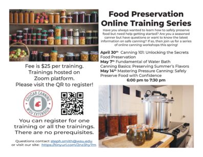 Have you always wanted to learn how to safely preserve food but need help getting started? Are you a seasoned canner but have questions or want to know the latest information on safe canning? If so, then join us for a series of online canning workshops this spring!