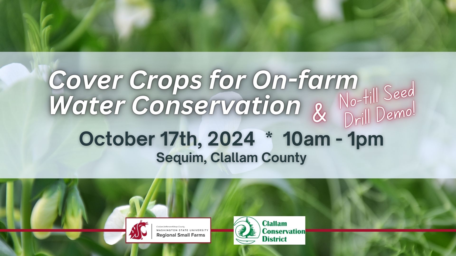 Cover Crops for On-farm Water Conservation and No-till Seed Drill Demonstration Presented by Clallam County Conservation District and WSU Extension Regional Small Farms Program. Free! Farmers who attend the event may be eligible to receive free cover crop seed for their farms from the Clallam Conservation District. In agriculture, cover crops are plants that are […]