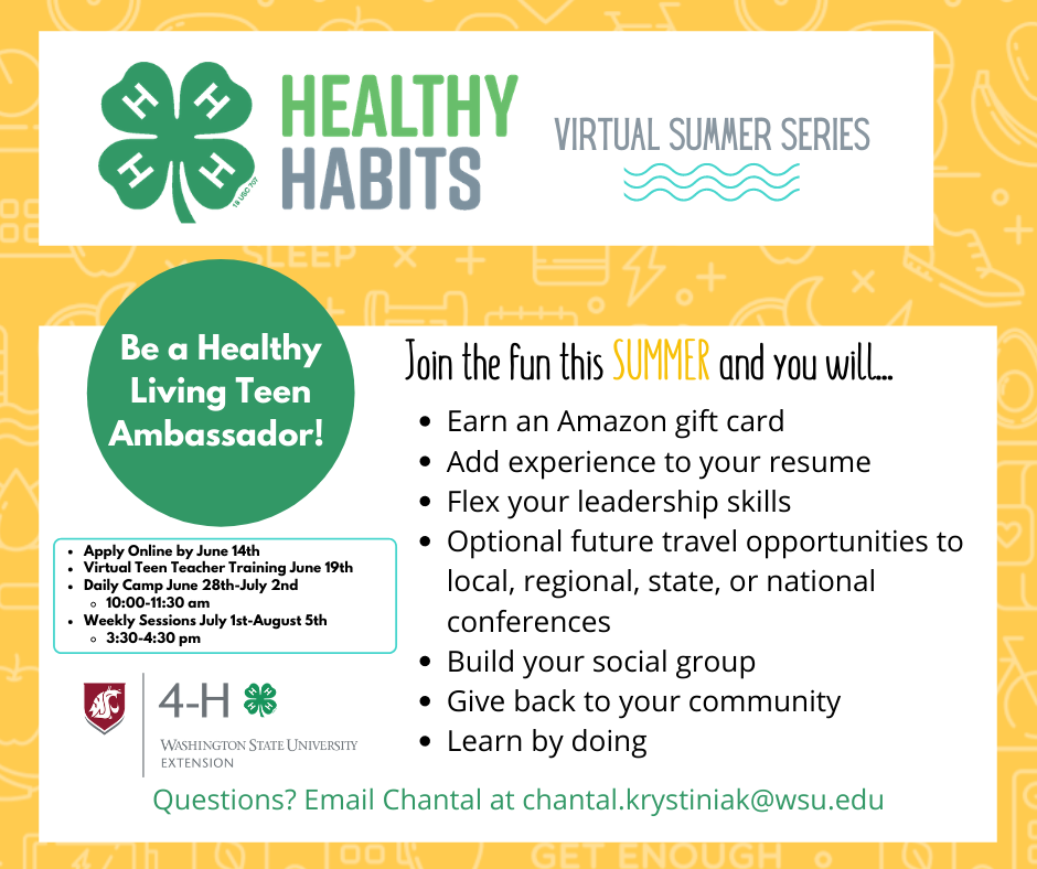 Call Clark County 4-H 564-397-5730 Email: chantal.krystiniak@wsu.edu