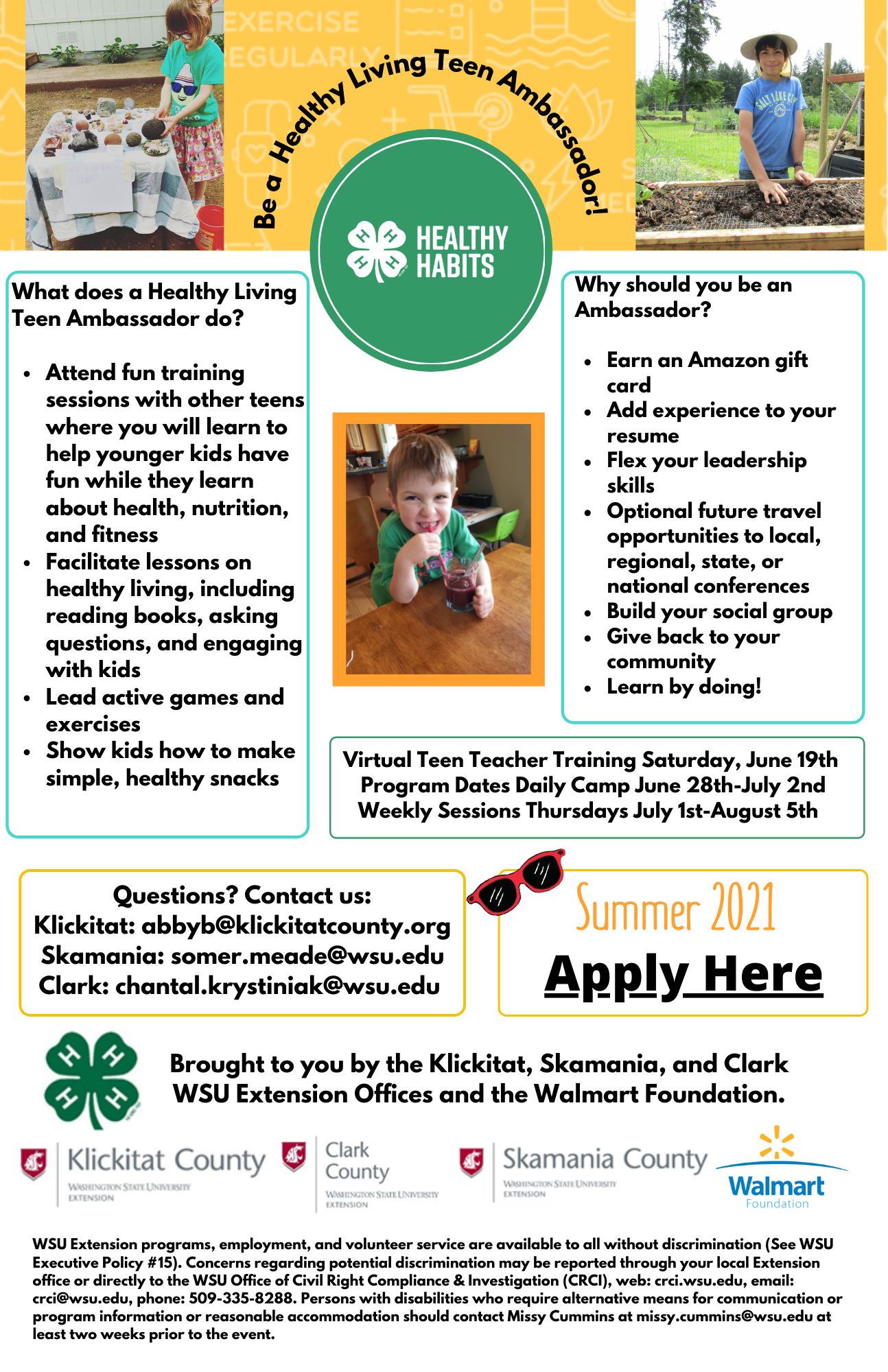 Call Klickitat County 4-H 509-773-5817 Email: abby.brandt@wsu.edu