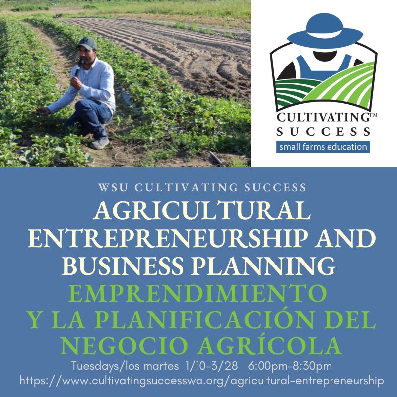 The Cultivating Success course has evolved into a fantastic state-wide offering in collaboration with the WSU Food Systems team. The course is a hybrid of online learning with a state-wide group of about 100 participants, and with a regional breakout group of 15 people that meet in person. Our tri-county regional group consists of new farmers starting farms, farmers expanding on existing farms and farmers fine-tuning existing farms. This year Cultivating Success also directed outreach to Spanish speaking communities in the state and it includes live translation in Spanish. Spread the word about this incredible course, it just keeps getting better. Learn more here.