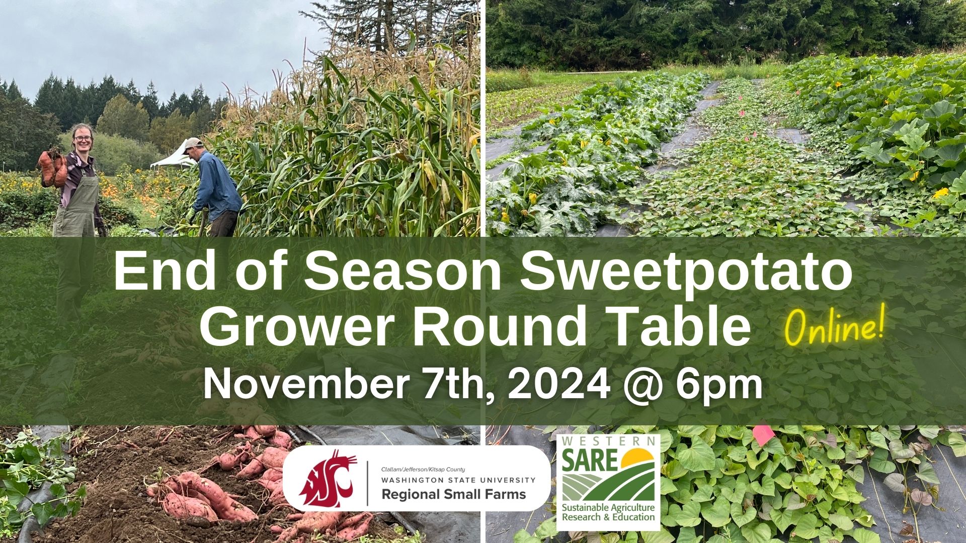 Join WSU Regional Small Farms in an end of season sweetpotato grower round table. Did you grow sweetpotatoes this year? Are you interested in learning from the experiences of farmers who did? Join us for this end of season discussion. Harvest will be complete and it's an excellent time to talk about what went right […]