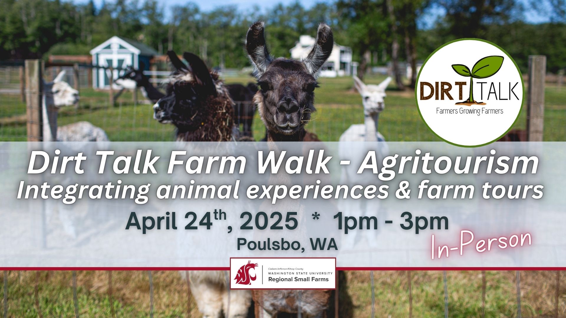WSU Regional Small Farms will be hosting a special series of educational Dirt Talk Farm Walks in 2025 throughout Kitsap County in conjunction with the Kitsap Agritourism Coalition farms. This group of dedicated farmers will be sharing their unique experiences and expertise around integrating agritourism as part of your farm business. Join us for the […]