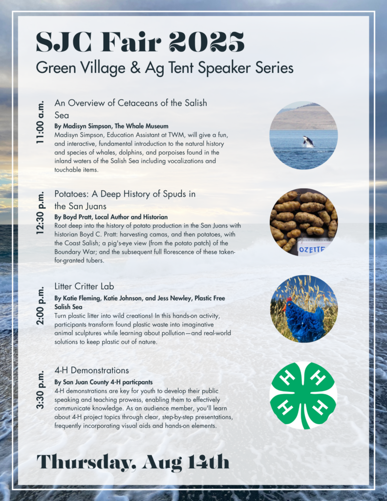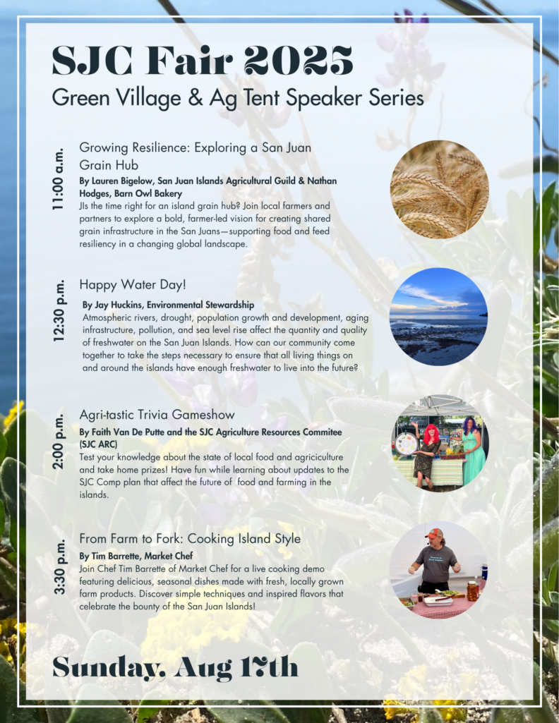 The San Juan Extension Ag Program hosts the Agricultural Tent at the San Juan County Fair each summer, bringing together local food and farming organizations to share information and resources with fairgoers, and also highlighting our unique and abundant local agriculture through visual displays and a series of talks and demonstrations on food and farming related topics.