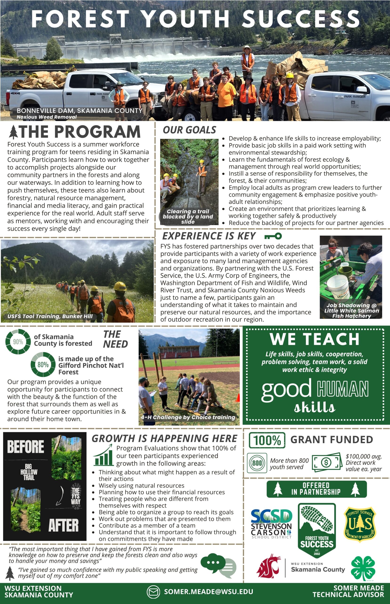 Forest Youth Success is a paid summer work program for teens living in or on the border of Skamania County. All teens must: