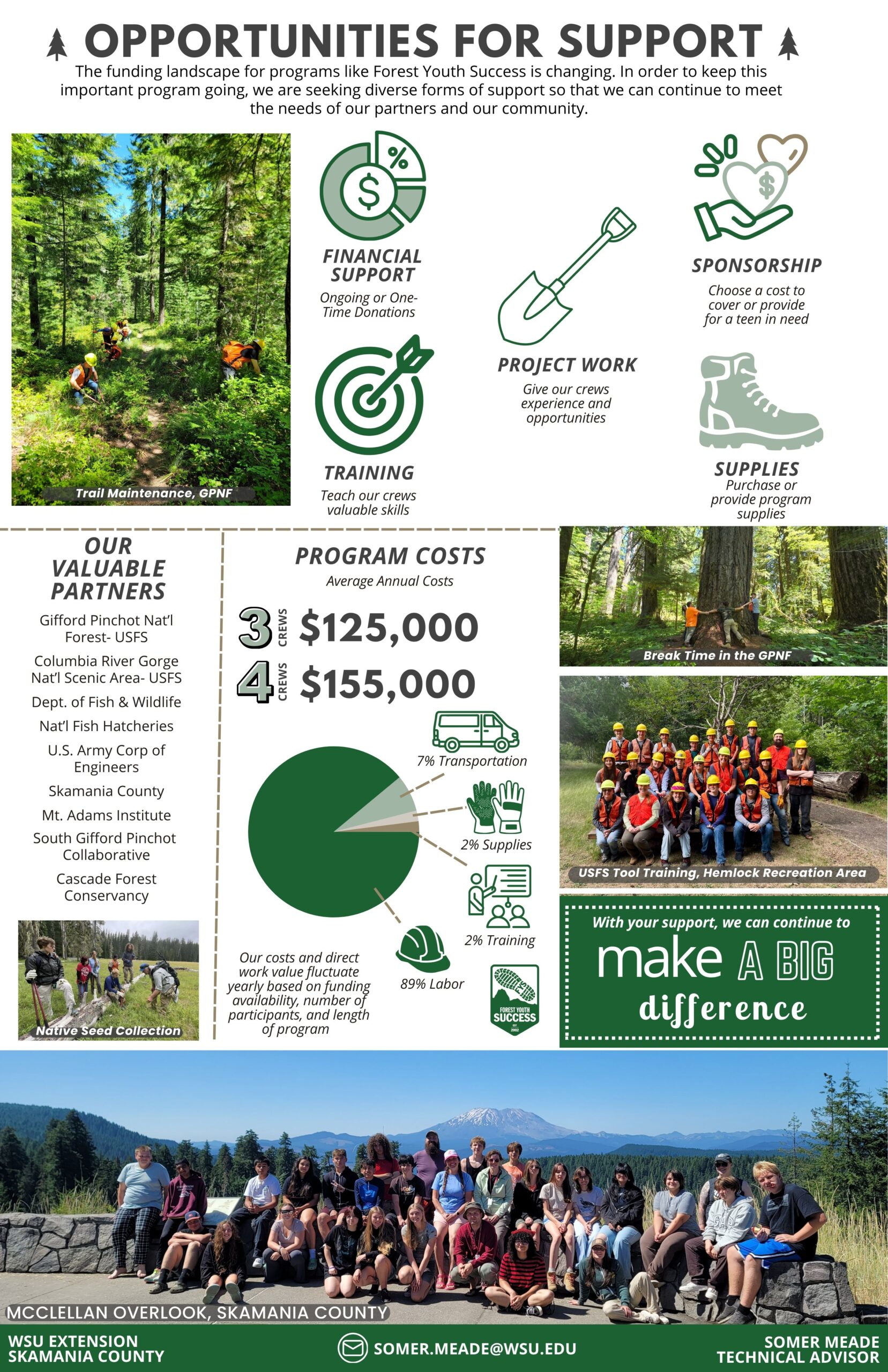 - Develop a sense of responsibility for the forest and Skamania County communities