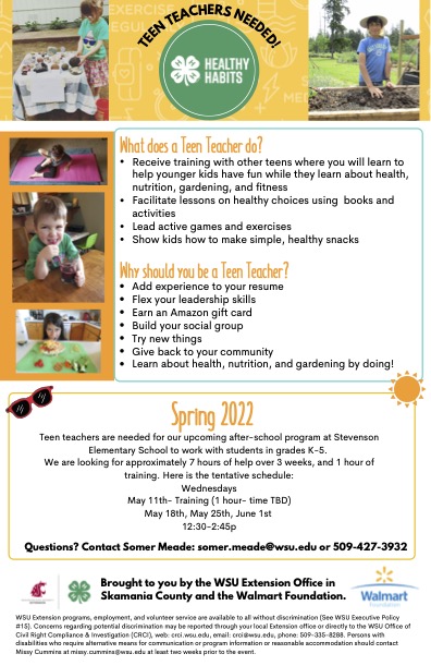 Call Skamania County 4-H 509-427-3932 Email: somer.meade@wsu.edu