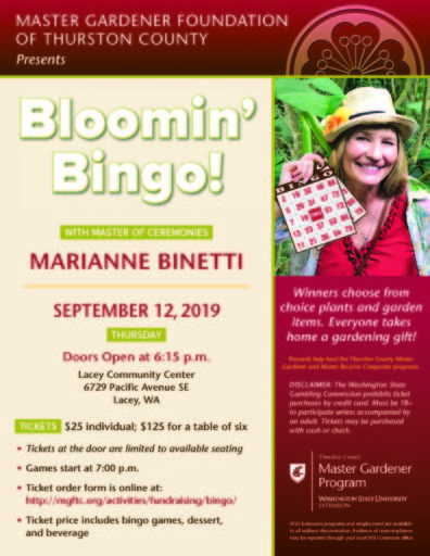 If you love plants and playing bingo then don’t miss this great opportunity to do both. Master of Ceremonies, Marianne Binetti, will be sharing a wealth of gardening tips while playing bingo. Winners choose from choice plants and garden items. Everyone takes home a gardening gift!