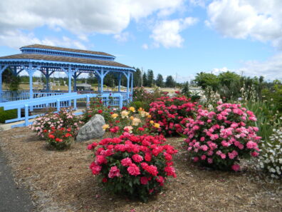 Gazebo and peonies at Closed Loop Park
