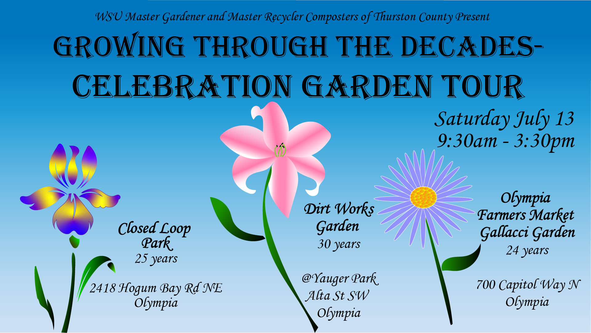 Closed Loop Park 2420 Hogum Bay Road Northeast, Lacey, WA 98516, USA, Lacey, WA, United StatesJoin us in celebrating milestone anniversaries of our demonstration gardens! Enjoy the day touring one, two or all three, unique public gardens Gain ideas and inspiration Participate in special anniversary activities at each of the gardens Get your gardening, composting and recycling questions answered This event is FREE and happens rain or shine For a complete schedule, directions […]