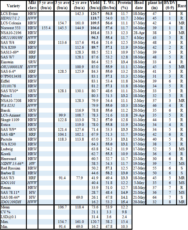 • HRS= hard red spring; HWS=hard white spring; HRF= hard red facultative; HRSI = hard red spring Clearfield