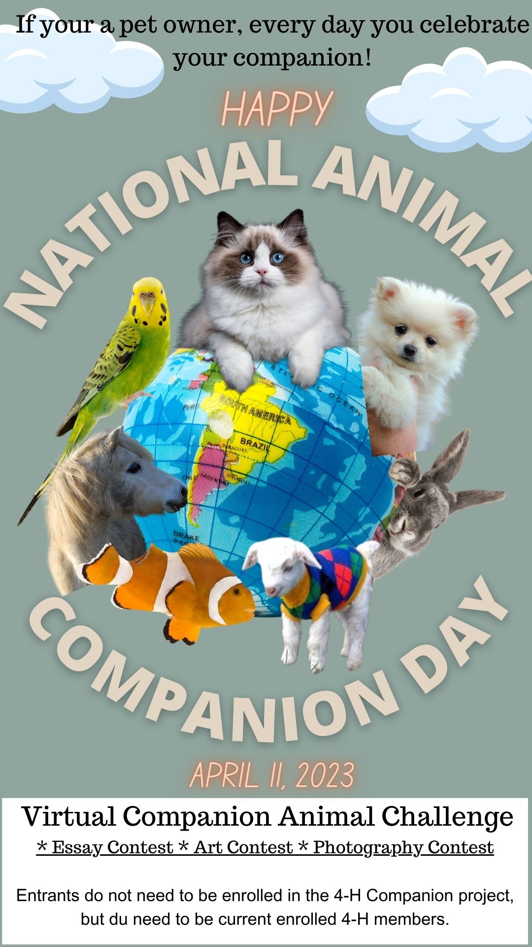 The Virtual Animal Companion Challenge offers a variety of 4-H companion animal contests that don’t require live animals, including an essay, art, and photography contests. Youth have the opportunity to display their companion animal knowledge through these contests. Follow the guidelines for each contest entry and submit to yakima.4h@wsu.edu. $10 for first place $5 for second place $2 for third place in each category.