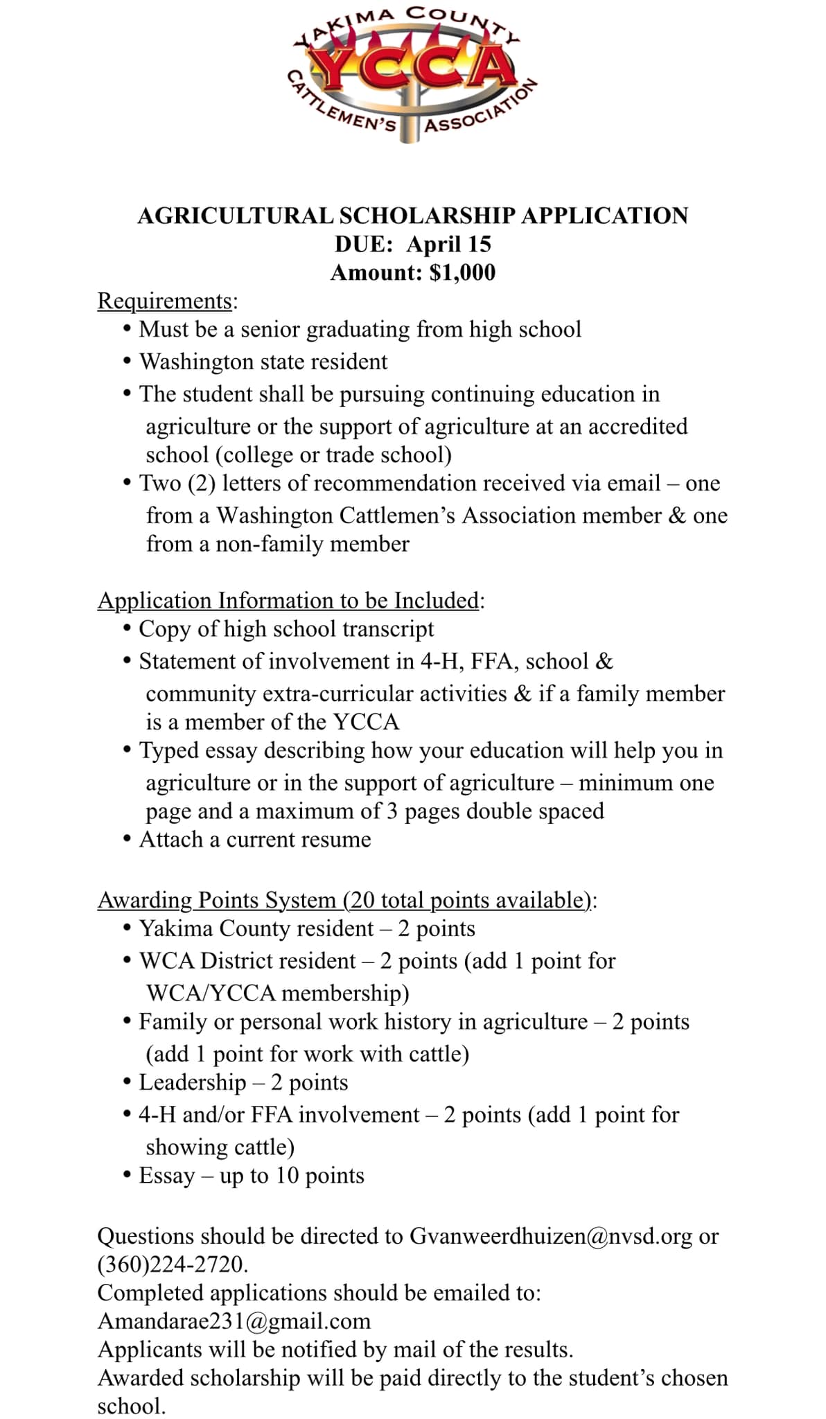 If you have any questions, please contact the Kittitas County 4-H Program Manager, Amy Alder ____ or at 509-388-2588.