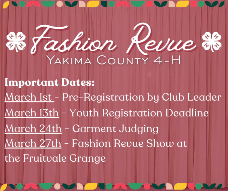 - March 24th – Garment judging at the WSU Extension Office Large Conference Room (mandatory for participants)